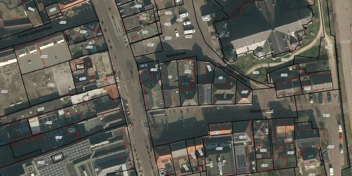 Maasstraat 1-b is gelegen op kadastraal perceel CUI00C60. Deze kadastrale aanduiding is uniek en wordt gebruikt door het Kadaster om eigendomsrechten en andere zakelijke rechten vast te leggen. Het perceel maakt onderdeel uit van de kadastrale gemeente Cuijk.