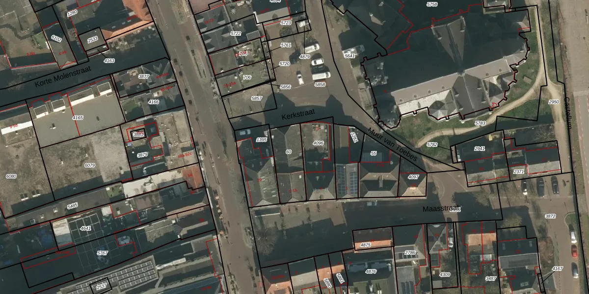 Het adres is gelegen op perceel 60 in de sectie C en de kadastrale gemeente Cuijk. De kadastrale aanduiding is aldus CUI00-C-60. De gemiddelde perceelgrootte in Cuijk is 3860,42 m². Dit perceel is kleiner: de perceeloppervlakte bedraagt 255 m². De grootste perceeloppervlakte in de kadastrale gemeente is 72,5 ha. De kleinste oppervlakte bedraagt 0 m². Er zijn 8 adressen aanwezig op het perceel. De huidige grenzen van het perceel zijn digitaal in de Basisregistratie Kadaster (BRK) geregistreerd op 28-10-2010.