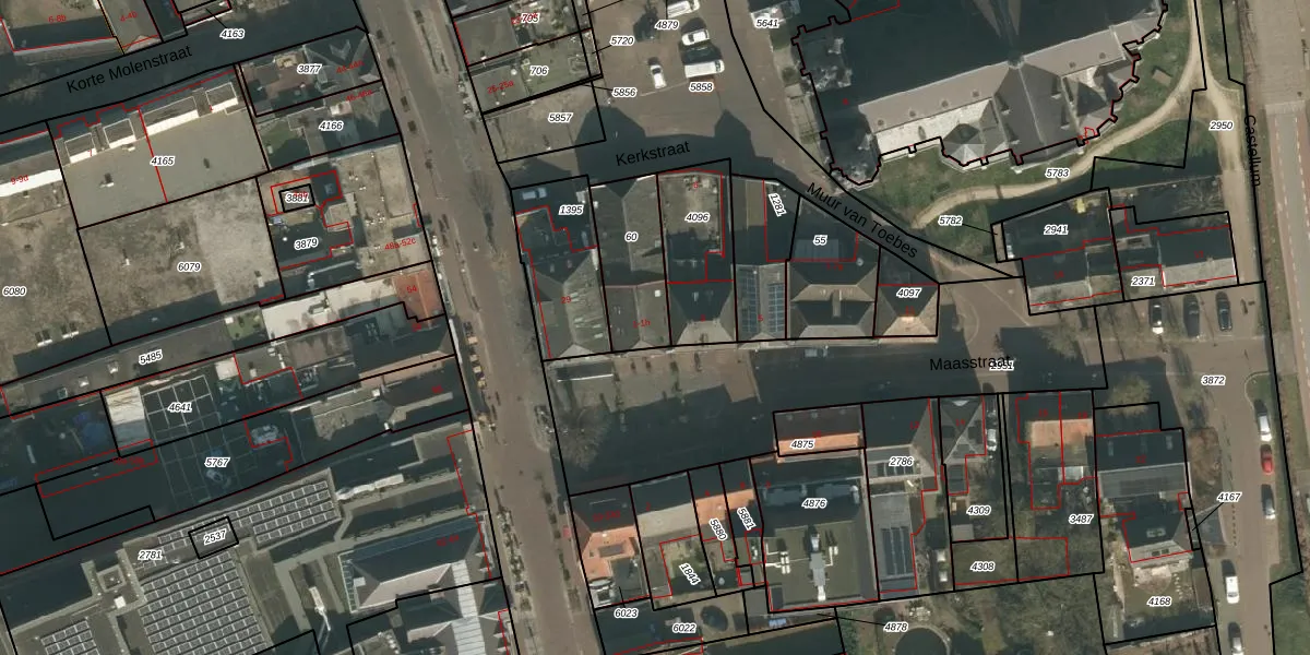 Maasstraat 1-h is gelegen op kadastraal perceel CUI00C60. Deze kadastrale aanduiding is uniek en wordt gebruikt door het Kadaster om eigendomsrechten en andere zakelijke rechten vast te leggen. Het perceel maakt onderdeel uit van de kadastrale gemeente Cuijk.