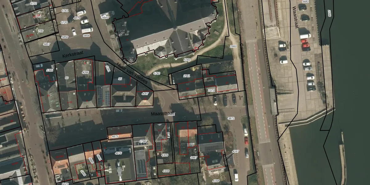 Maasstraat 15 is gelegen op kadastraal perceel CUI00C2941. Deze kadastrale aanduiding is uniek en wordt gebruikt door het Kadaster om eigendomsrechten en andere zakelijke rechten vast te leggen. Het perceel maakt onderdeel uit van de kadastrale gemeente Cuijk.