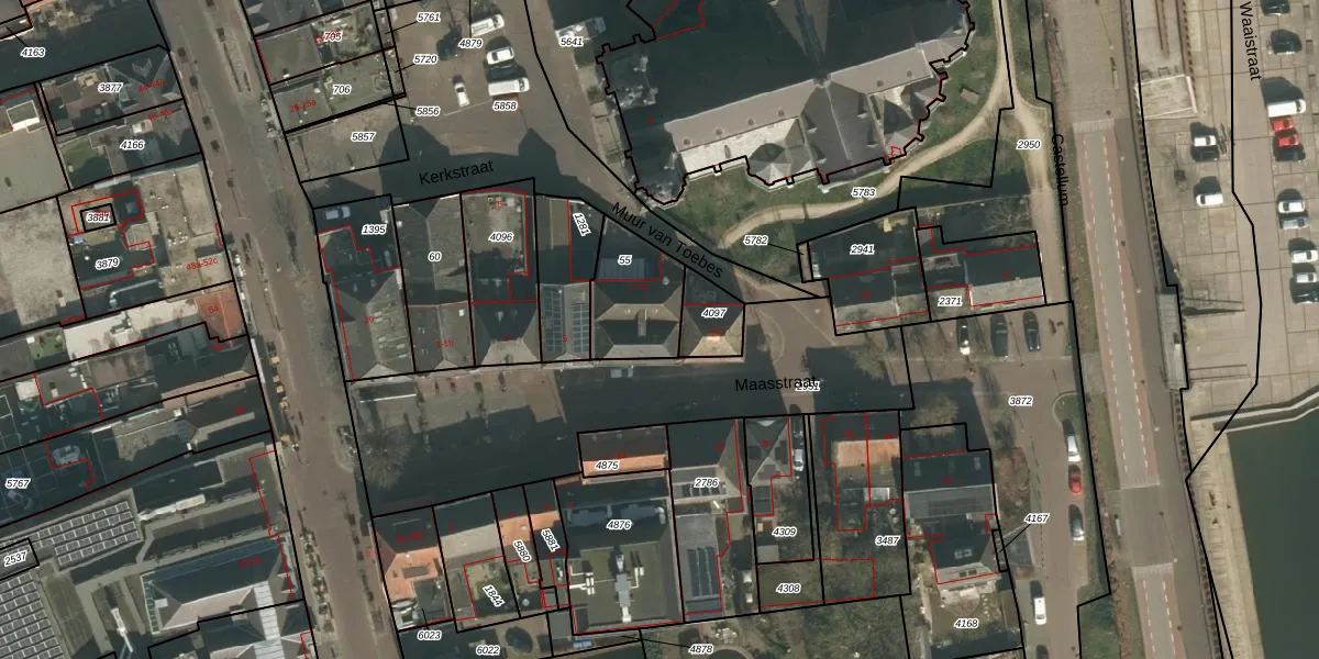Maasstraat 7-a is gelegen op kadastraal perceel CUI00C55. Deze kadastrale aanduiding is uniek en wordt gebruikt door het Kadaster om eigendomsrechten en andere zakelijke rechten vast te leggen. Het perceel maakt onderdeel uit van de kadastrale gemeente Cuijk.
