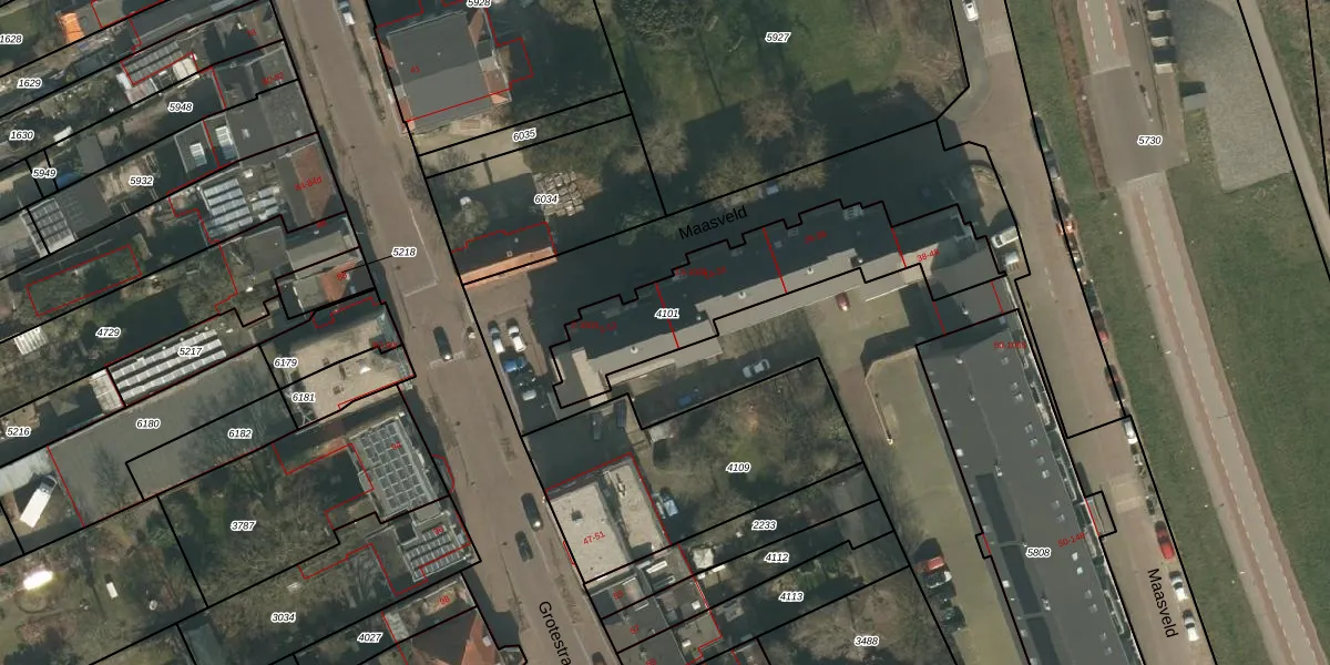 Maasveld 1003 is gelegen op kadastraal perceel CUI00C4101. Deze kadastrale aanduiding is uniek en wordt gebruikt door het Kadaster om eigendomsrechten en andere zakelijke rechten vast te leggen. Het perceel maakt onderdeel uit van de kadastrale gemeente Cuijk.