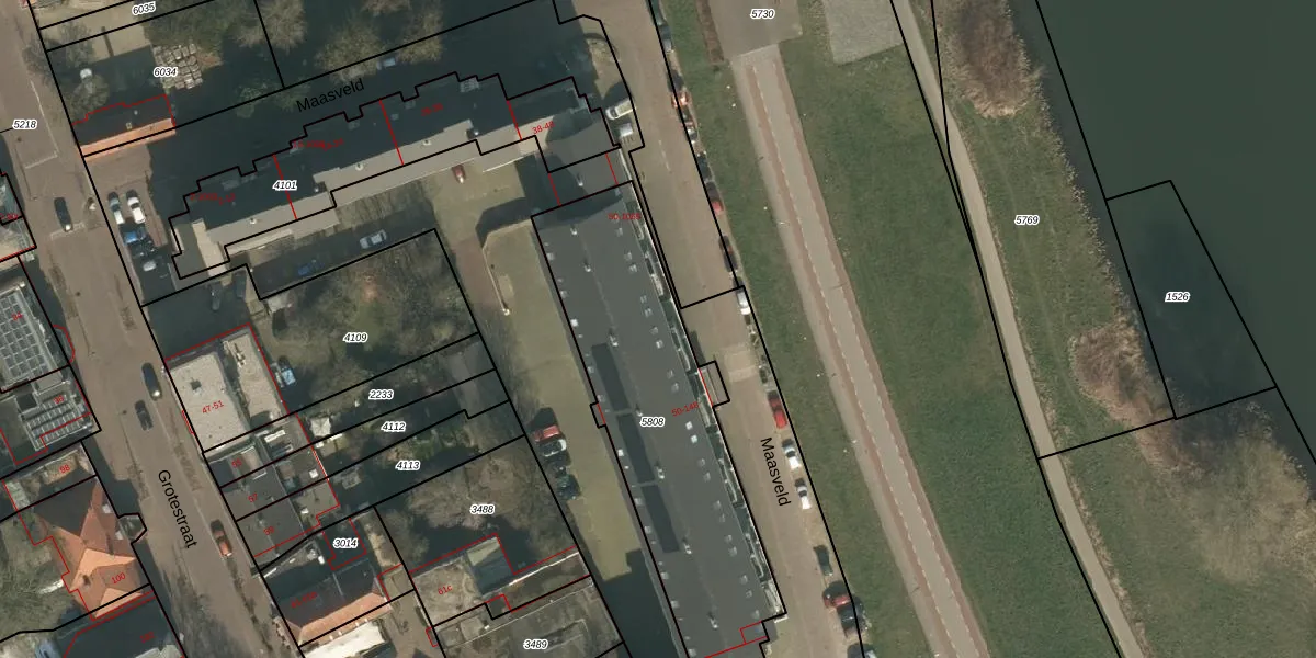 Maasveld 1023 is gelegen op kadastraal perceel CUI00C5808. Deze kadastrale aanduiding is uniek en wordt gebruikt door het Kadaster om eigendomsrechten en andere zakelijke rechten vast te leggen. Het perceel maakt onderdeel uit van de kadastrale gemeente Cuijk.