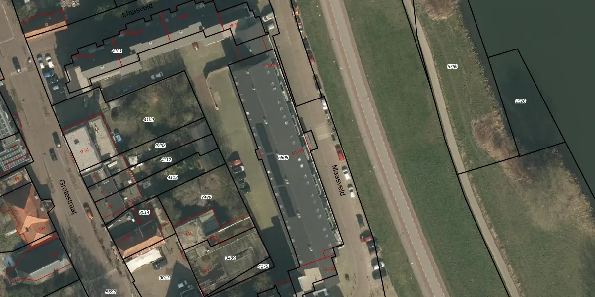 Maasveld 1028 is gelegen op kadastraal perceel CUI00C5808. Deze kadastrale aanduiding is uniek en wordt gebruikt door het Kadaster om eigendomsrechten en andere zakelijke rechten vast te leggen. Het perceel maakt onderdeel uit van de kadastrale gemeente Cuijk.