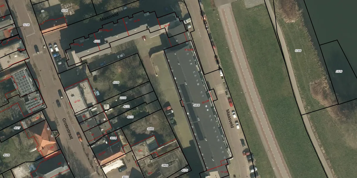 Maasveld 1050 is gelegen op kadastraal perceel CUI00C5808. Deze kadastrale aanduiding is uniek en wordt gebruikt door het Kadaster om eigendomsrechten en andere zakelijke rechten vast te leggen. Het perceel maakt onderdeel uit van de kadastrale gemeente Cuijk.