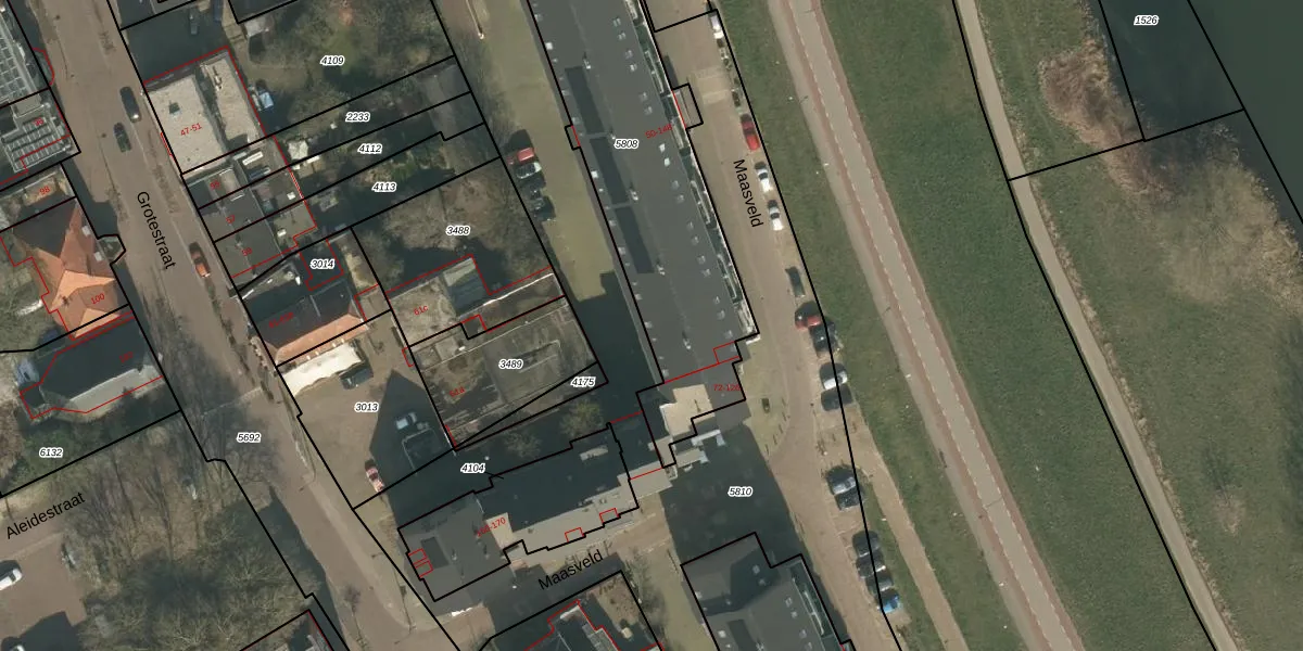 Maasveld 1063 is gelegen op kadastraal perceel CUI00C5808. Deze kadastrale aanduiding is uniek en wordt gebruikt door het Kadaster om eigendomsrechten en andere zakelijke rechten vast te leggen. Het perceel maakt onderdeel uit van de kadastrale gemeente Cuijk.