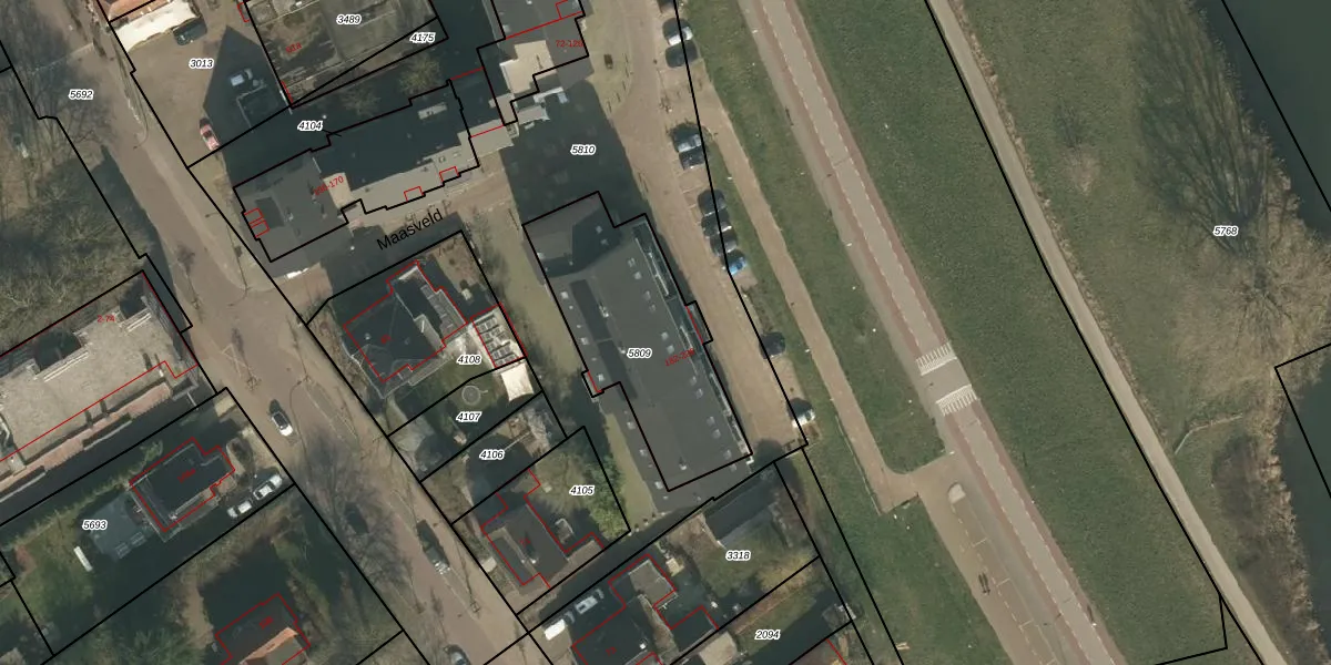 Maasveld 1071 is gelegen op kadastraal perceel CUI00C5809. Deze kadastrale aanduiding is uniek en wordt gebruikt door het Kadaster om eigendomsrechten en andere zakelijke rechten vast te leggen. Het perceel maakt onderdeel uit van de kadastrale gemeente Cuijk.