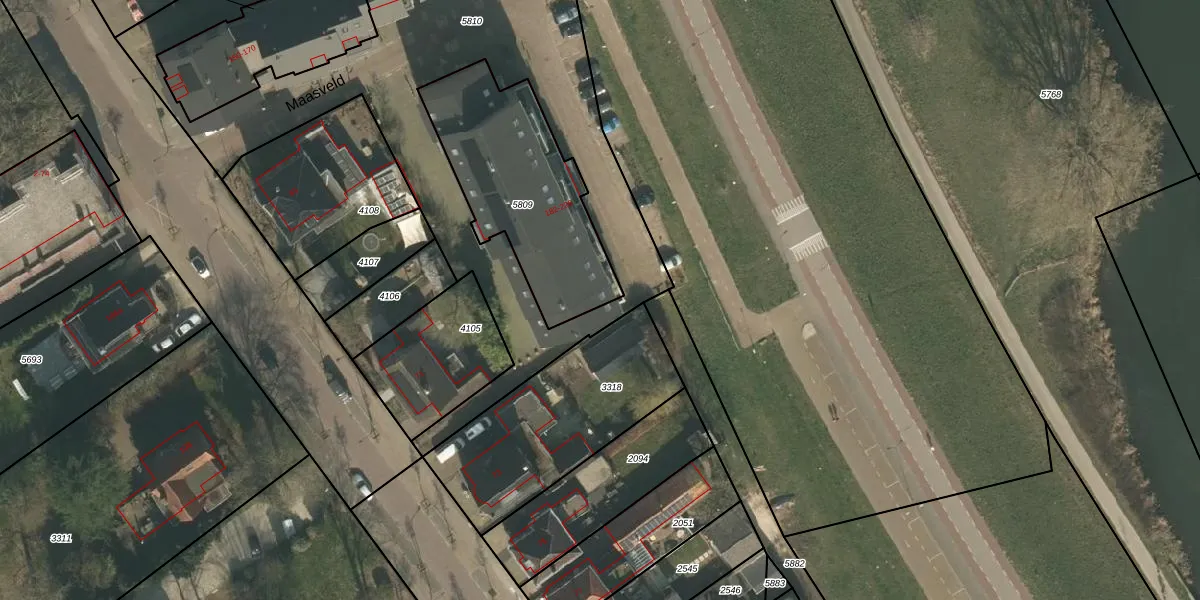 Maasveld 1077 is gelegen op kadastraal perceel CUI00C5809. Deze kadastrale aanduiding is uniek en wordt gebruikt door het Kadaster om eigendomsrechten en andere zakelijke rechten vast te leggen. Het perceel maakt onderdeel uit van de kadastrale gemeente Cuijk.