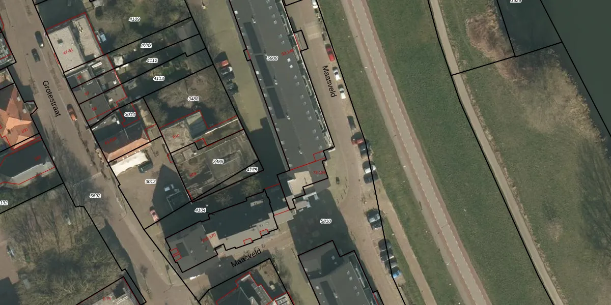 Maasveld 122 is gelegen op kadastraal perceel CUI00C5808. Deze kadastrale aanduiding is uniek en wordt gebruikt door het Kadaster om eigendomsrechten en andere zakelijke rechten vast te leggen. Het perceel maakt onderdeel uit van de kadastrale gemeente Cuijk.
