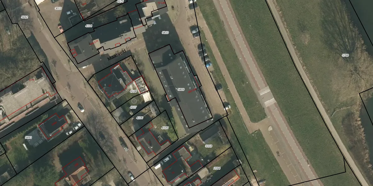 Maasveld 202 is gelegen op kadastraal perceel CUI00C5809. Deze kadastrale aanduiding is uniek en wordt gebruikt door het Kadaster om eigendomsrechten en andere zakelijke rechten vast te leggen. Het perceel maakt onderdeel uit van de kadastrale gemeente Cuijk.