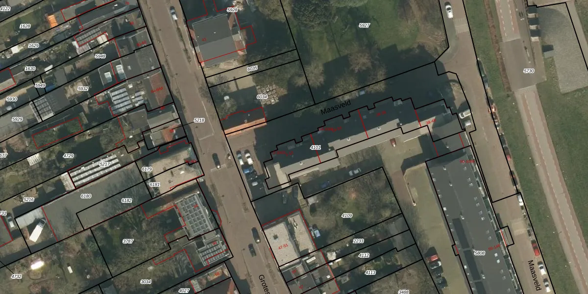 Maasveld 4 is gelegen op kadastraal perceel CUI00C4101. Deze kadastrale aanduiding is uniek en wordt gebruikt door het Kadaster om eigendomsrechten en andere zakelijke rechten vast te leggen. Het perceel maakt onderdeel uit van de kadastrale gemeente Cuijk.