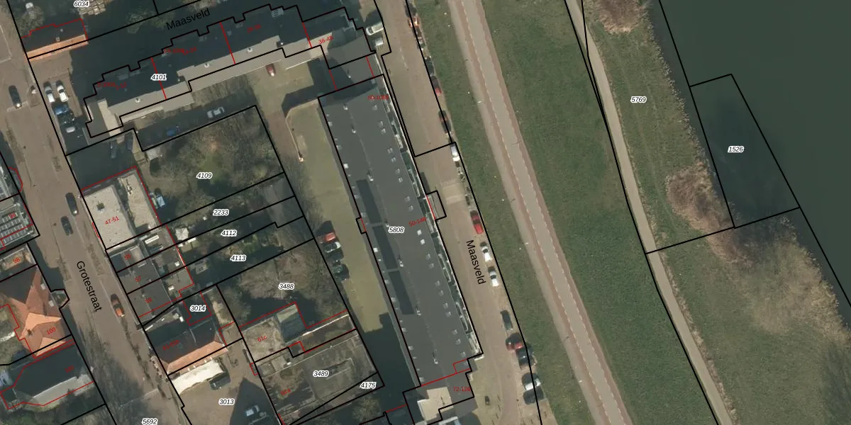 Maasveld 60 is gelegen op kadastraal perceel CUI00C5808. Deze kadastrale aanduiding is uniek en wordt gebruikt door het Kadaster om eigendomsrechten en andere zakelijke rechten vast te leggen. Het perceel maakt onderdeel uit van de kadastrale gemeente Cuijk.