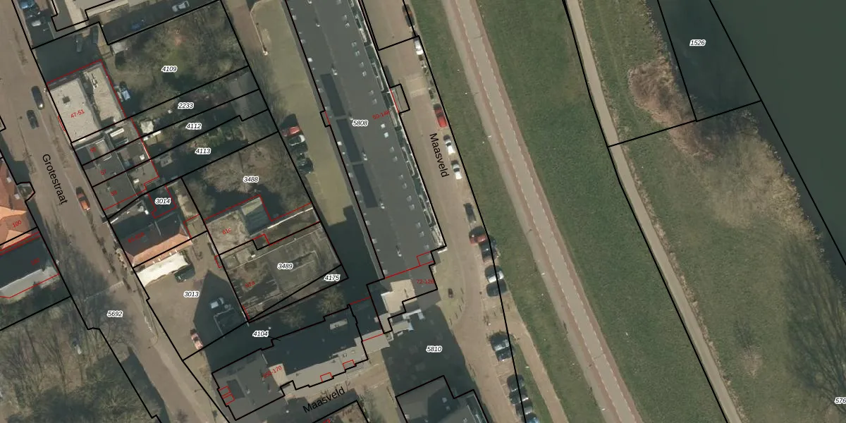 Maasveld 68 is gelegen op kadastraal perceel CUI00C5808. Deze kadastrale aanduiding is uniek en wordt gebruikt door het Kadaster om eigendomsrechten en andere zakelijke rechten vast te leggen. Het perceel maakt onderdeel uit van de kadastrale gemeente Cuijk.