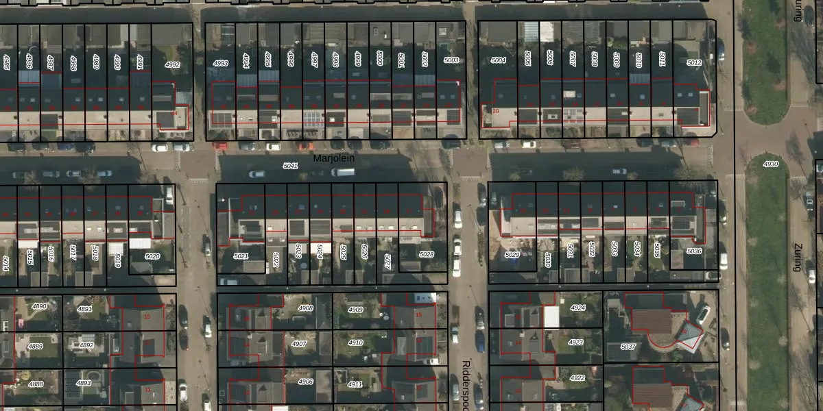 Het perceel waarop Marjolein 17 staat heeft een oppervlakte van 259 m². Dit is een middelgroot perceel. De perceeloppervlakte wordt geregistreerd door het Kadaster. Gedetailleerde informatie over de maten van dit perceel kunt u vinden in het rapport Kadastrale kaart met maatvoering van Marjolein 17.