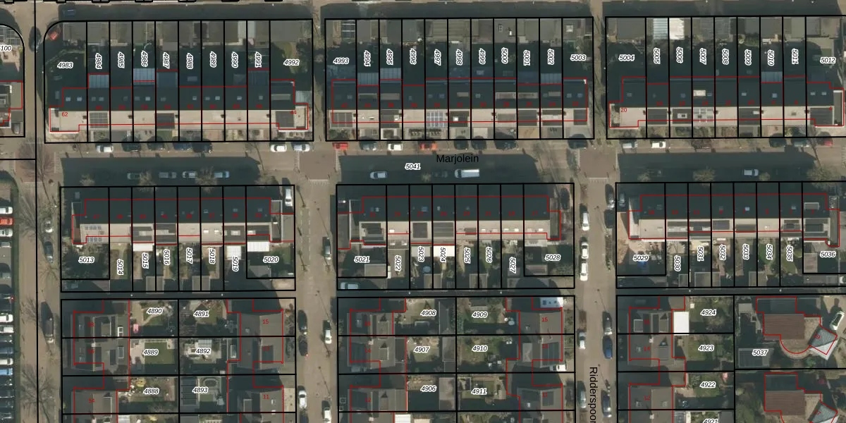 Het perceel waarop Marjolein 27 staat heeft een oppervlakte van 134 m². Dit is een middelgroot perceel. De perceeloppervlakte wordt geregistreerd door het Kadaster. Gedetailleerde informatie over de maten van dit perceel kunt u vinden in het rapport Kadastrale kaart met maatvoering van Marjolein 27.