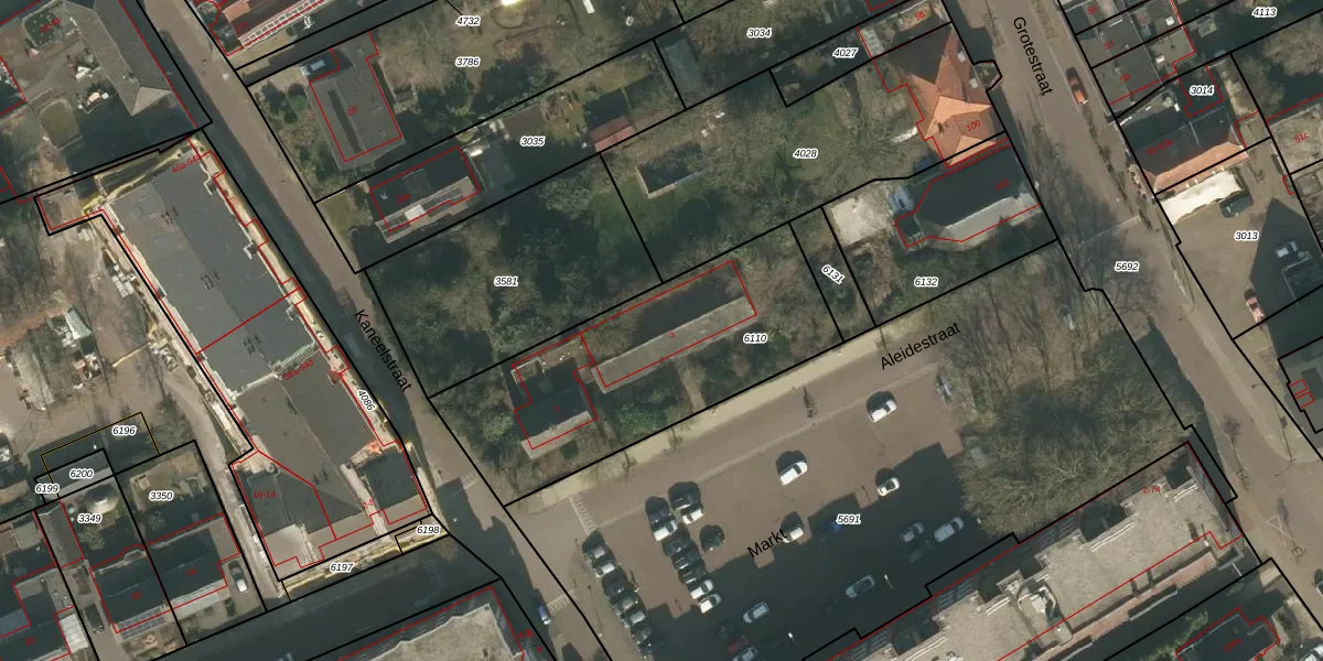 Het perceel waarop Markt 3 staat heeft een oppervlakte van 1170 m². Dit is een zeer groot perceel. De perceeloppervlakte wordt geregistreerd door het Kadaster. Gedetailleerde informatie over de maten van dit perceel kunt u vinden in het rapport Kadastrale kaart met maatvoering van Markt 3.