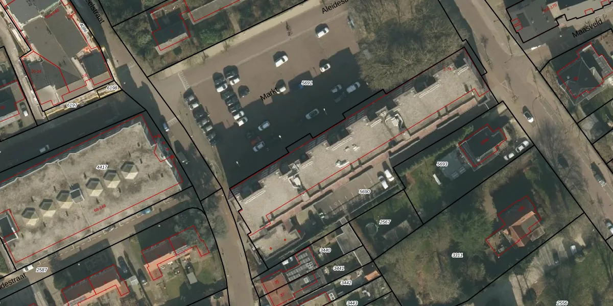 Het perceel waarop Markt 8 staat heeft een oppervlakte van 2385 m². Dit is een zeer groot perceel. De perceeloppervlakte wordt geregistreerd door het Kadaster. Gedetailleerde informatie over de maten van dit perceel kunt u vinden in het rapport Kadastrale kaart met maatvoering van Markt 8.