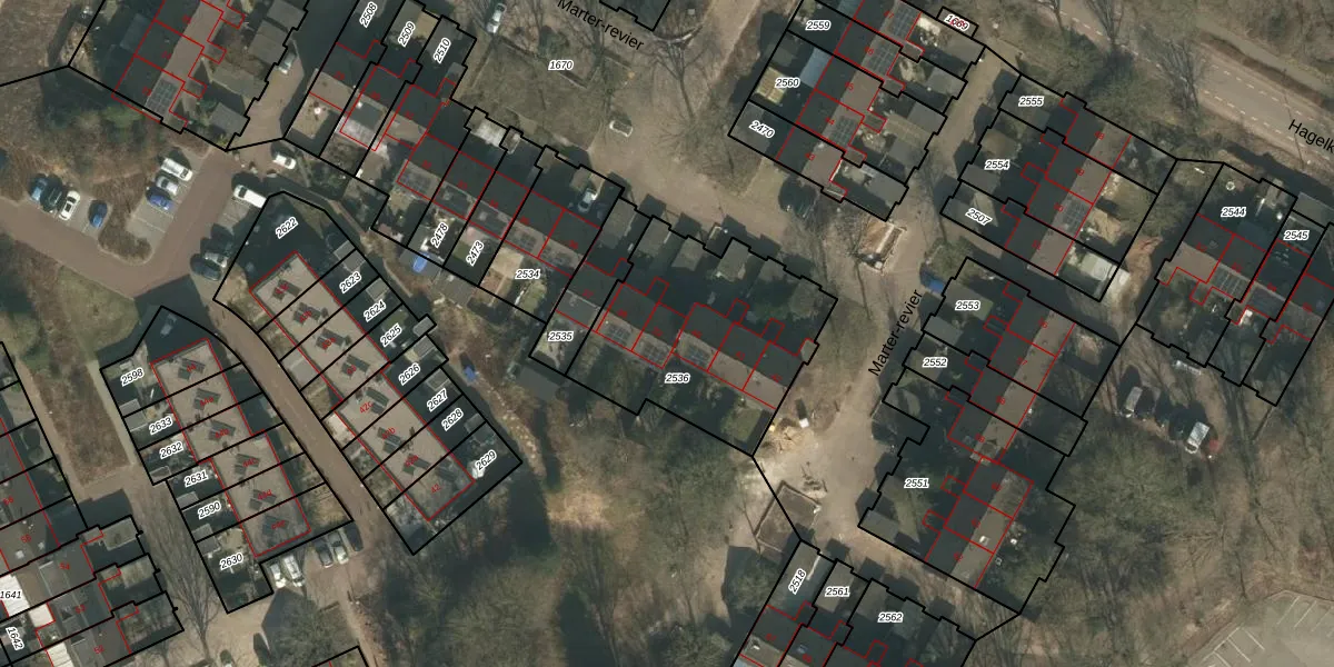 Het perceel waarop Marter-revier 39 staat heeft een oppervlakte van 825 m². Dit is een groot perceel. De perceeloppervlakte wordt geregistreerd door het Kadaster. Gedetailleerde informatie over de maten van dit perceel kunt u vinden in het rapport Kadastrale kaart met maatvoering van Marter-revier 39.
