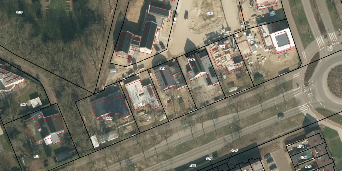 Het perceel waarop Merletplein 17 staat heeft een oppervlakte van 590 m². Dit is een groot perceel. De perceeloppervlakte wordt geregistreerd door het Kadaster. Gedetailleerde informatie over de maten van dit perceel kunt u vinden in het rapport Kadastrale kaart met maatvoering van Merletplein 17.