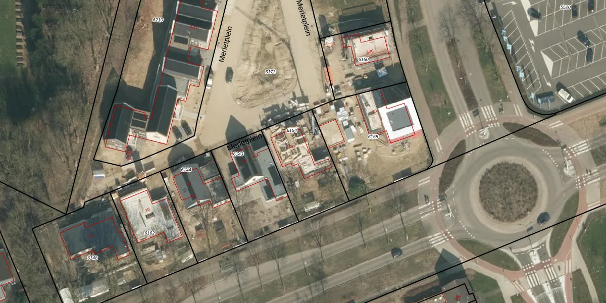 Het perceel waarop Merletplein 19 staat heeft een oppervlakte van 590 m². Dit is een groot perceel. De perceeloppervlakte wordt geregistreerd door het Kadaster. Gedetailleerde informatie over de maten van dit perceel kunt u vinden in het rapport Kadastrale kaart met maatvoering van Merletplein 19.
