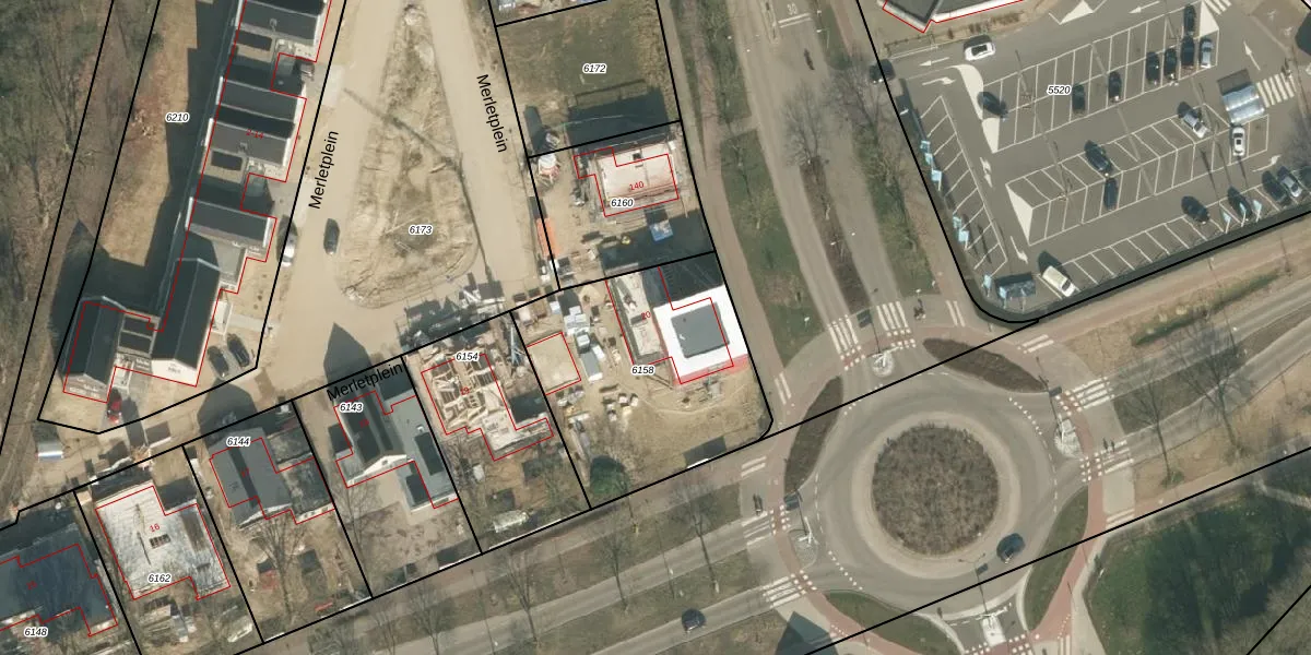 Het perceel waarop Merletplein 20 staat heeft een oppervlakte van 990 m². Dit is een groot perceel. De perceeloppervlakte wordt geregistreerd door het Kadaster. Gedetailleerde informatie over de maten van dit perceel kunt u vinden in het rapport Kadastrale kaart met maatvoering van Merletplein 20.