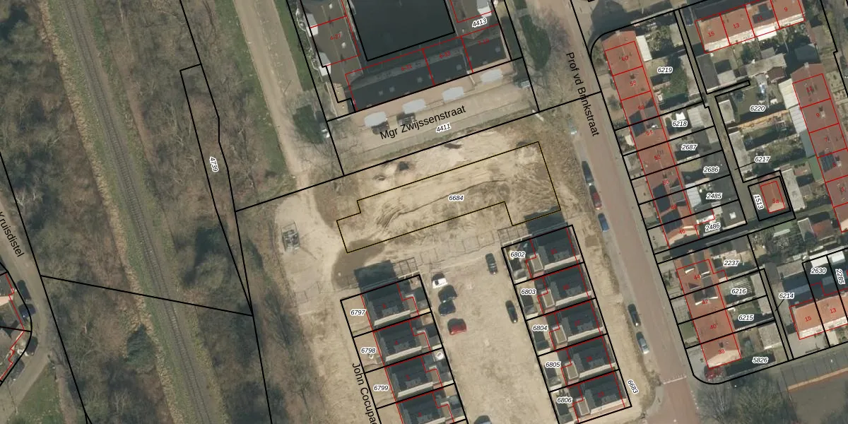 Mgr Zwijssenstraat 41 is gelegen op kadastraal perceel CUI00A6684. Deze kadastrale aanduiding is uniek en wordt gebruikt door het Kadaster om eigendomsrechten en andere zakelijke rechten vast te leggen. Het perceel maakt onderdeel uit van de kadastrale gemeente Cuijk.