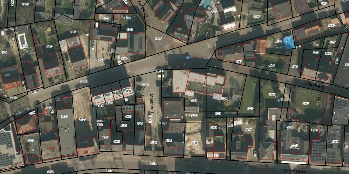 Het perceel waarop Molenpad 2 staat heeft een oppervlakte van 518 m². Dit is een groot perceel. De perceeloppervlakte wordt geregistreerd door het Kadaster. Gedetailleerde informatie over de maten van dit perceel kunt u vinden in het rapport Kadastrale kaart met maatvoering van Molenpad 2.