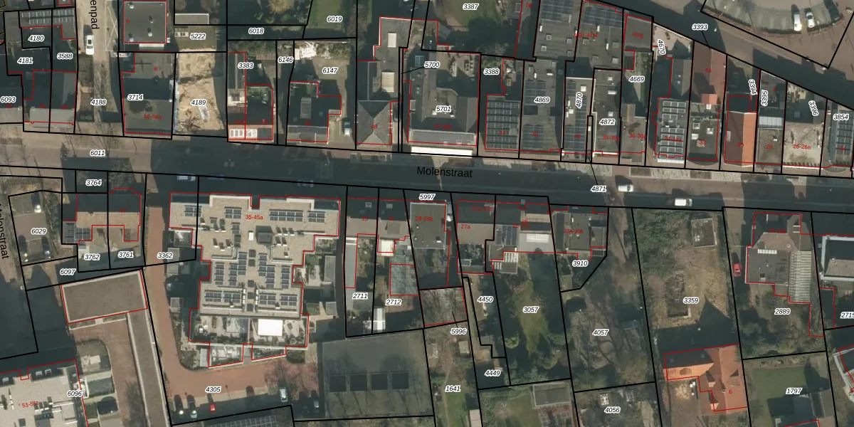 Het perceel waarop Molenstraat 29 staat heeft een oppervlakte van 245 m². Dit is een middelgroot perceel. De perceeloppervlakte wordt geregistreerd door het Kadaster. Gedetailleerde informatie over de maten van dit perceel kunt u vinden in het rapport Kadastrale kaart met maatvoering van Molenstraat 29.