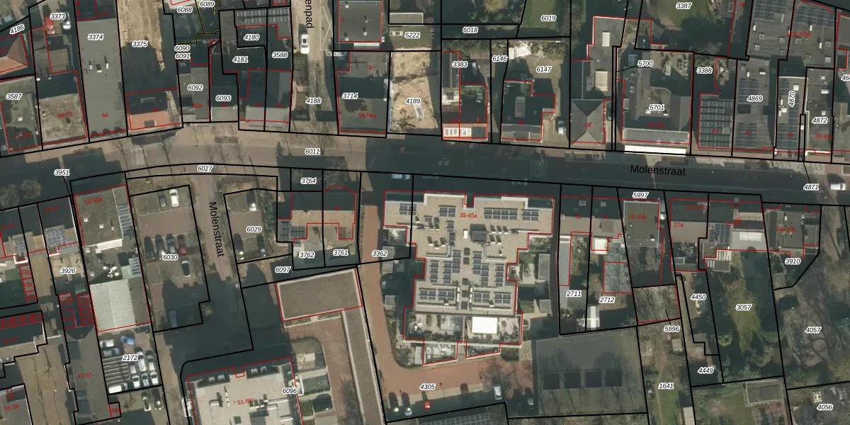 Molenstraat 41-b is gelegen op kadastraal perceel CUI00C4305. Deze kadastrale aanduiding is uniek en wordt gebruikt door het Kadaster om eigendomsrechten en andere zakelijke rechten vast te leggen. Het perceel maakt onderdeel uit van de kadastrale gemeente Cuijk.