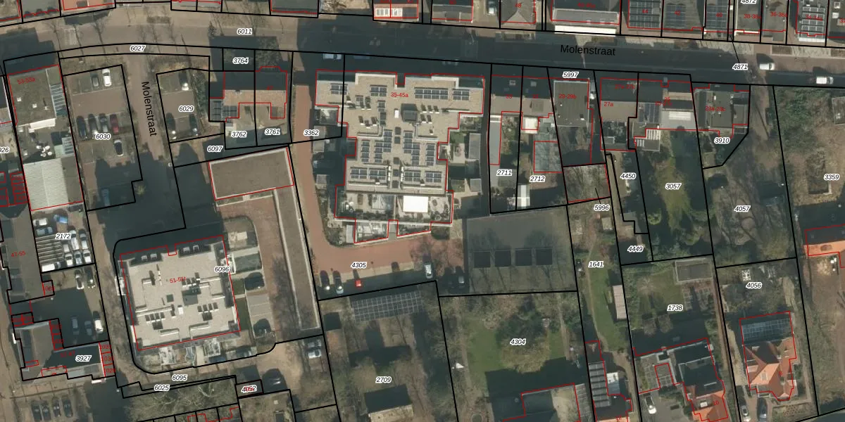 Het perceel waarop Molenstraat 43-a staat heeft een oppervlakte van 2665 m². Dit is een zeer groot perceel. De perceeloppervlakte wordt geregistreerd door het Kadaster. Gedetailleerde informatie over de maten van dit perceel kunt u vinden in het rapport Kadastrale kaart met maatvoering van Molenstraat 43-a.