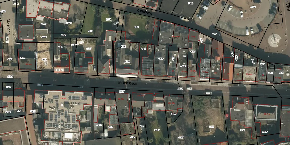 Het perceel waarop Molenstraat 44 staat heeft een oppervlakte van 247 m². Dit is een middelgroot perceel. De perceeloppervlakte wordt geregistreerd door het Kadaster. Gedetailleerde informatie over de maten van dit perceel kunt u vinden in het rapport Kadastrale kaart met maatvoering van Molenstraat 44.