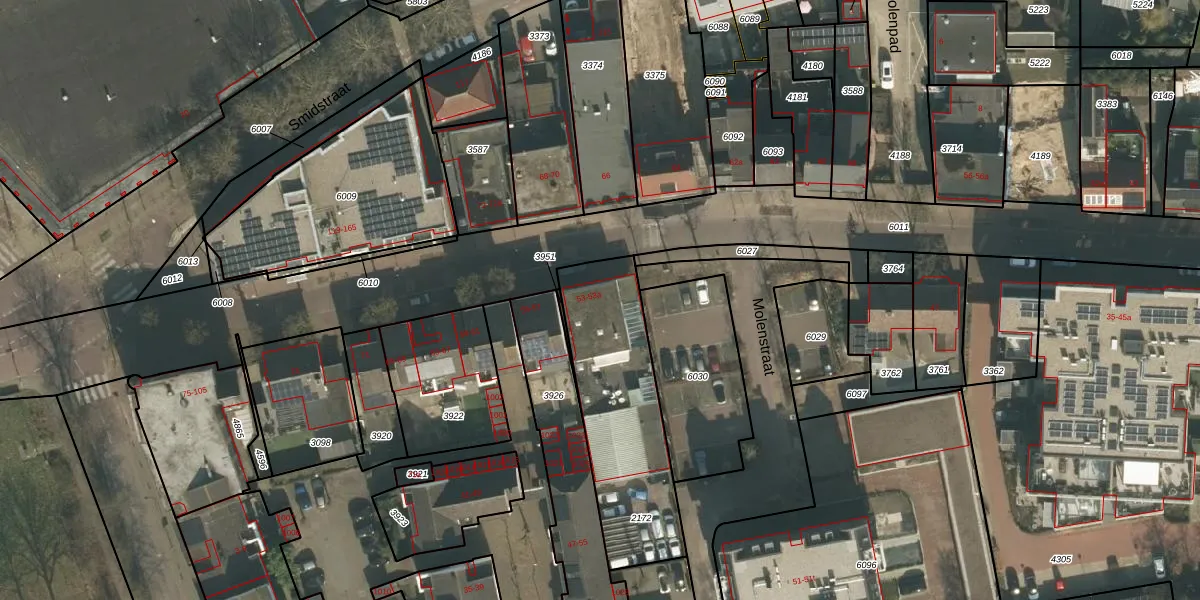 Het perceel waarop Molenstraat 53 staat heeft een oppervlakte van 666 m². Dit is een groot perceel. De perceeloppervlakte wordt geregistreerd door het Kadaster. Gedetailleerde informatie over de maten van dit perceel kunt u vinden in het rapport Kadastrale kaart met maatvoering van Molenstraat 53.
