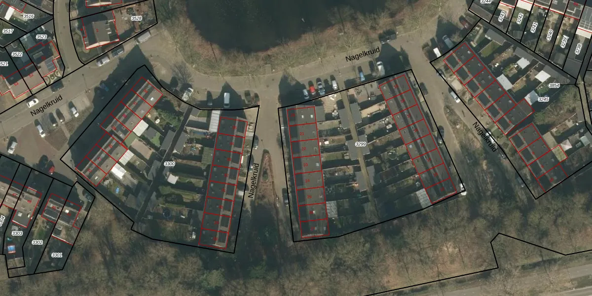 Het perceel waarop Nagelkruid 22 staat heeft een oppervlakte van 2487 m². Dit is een zeer groot perceel. De perceeloppervlakte wordt geregistreerd door het Kadaster. Gedetailleerde informatie over de maten van dit perceel kunt u vinden in het rapport Kadastrale kaart met maatvoering van Nagelkruid 22.