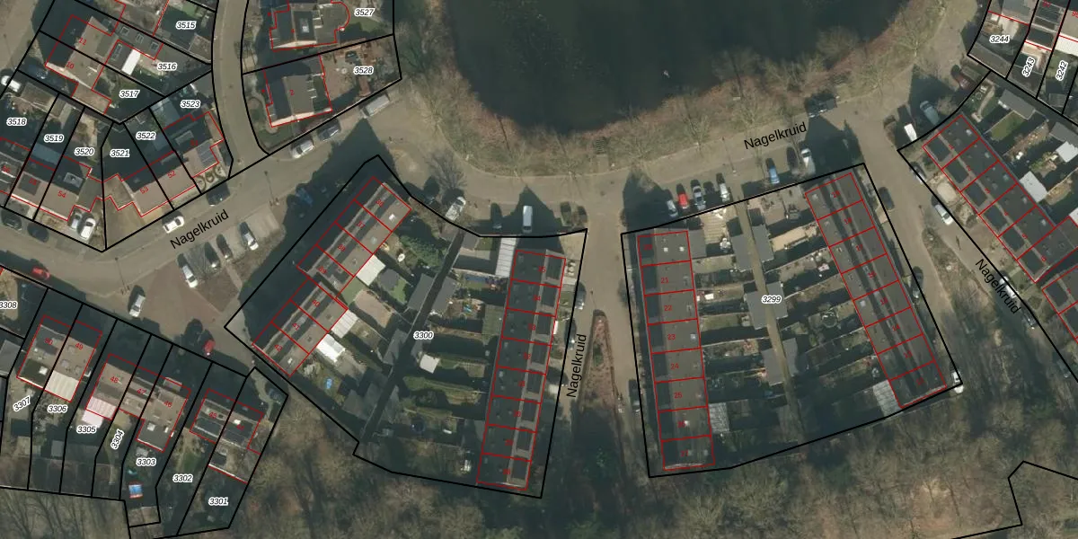 Het perceel waarop Nagelkruid 35 staat heeft een oppervlakte van 2533 m². Dit is een zeer groot perceel. De perceeloppervlakte wordt geregistreerd door het Kadaster. Gedetailleerde informatie over de maten van dit perceel kunt u vinden in het rapport Kadastrale kaart met maatvoering van Nagelkruid 35.