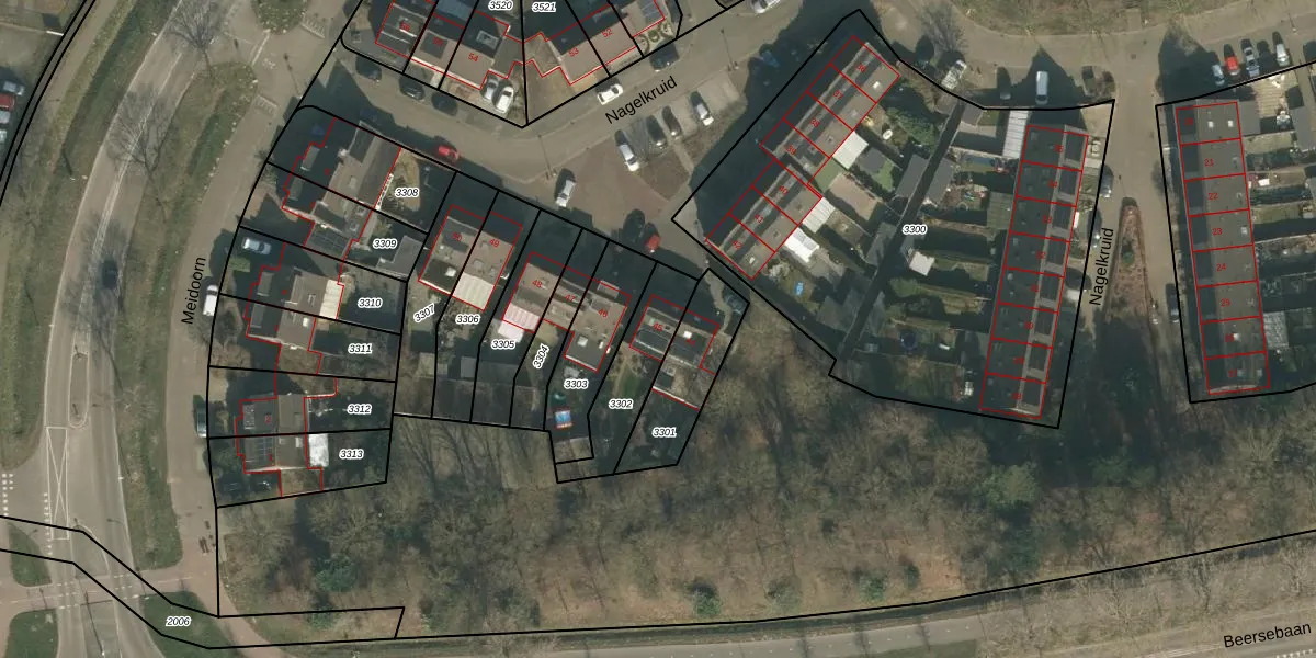 Nagelkruid 45 is gelegen op kadastraal perceel CUI00A3302. Deze kadastrale aanduiding is uniek en wordt gebruikt door het Kadaster om eigendomsrechten en andere zakelijke rechten vast te leggen. Het perceel maakt onderdeel uit van de kadastrale gemeente Cuijk.