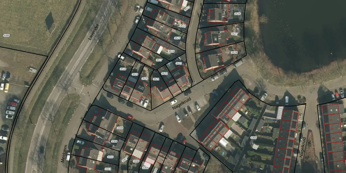 Gebruik de zoekbalk of klik op een perceel voor informatie over de adressen binnen dit perceel.