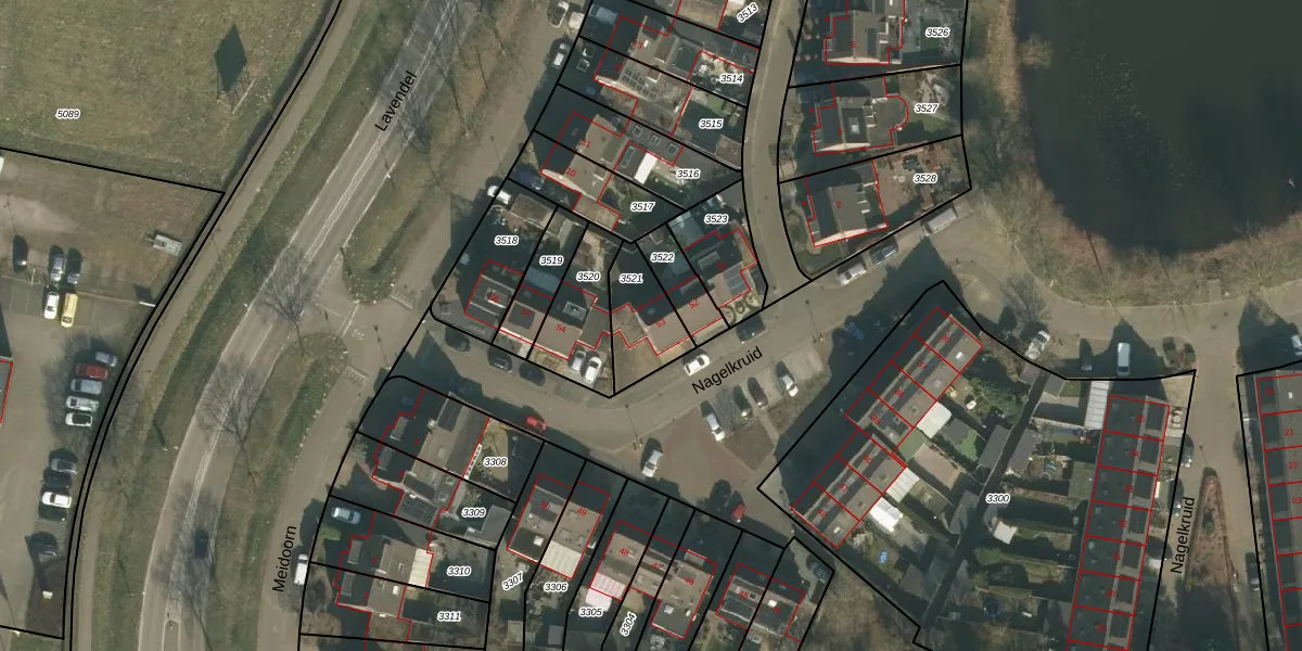 Het perceel waarop Nagelkruid 53 staat heeft een oppervlakte van 182 m². Dit is een middelgroot perceel. De perceeloppervlakte wordt geregistreerd door het Kadaster. Gedetailleerde informatie over de maten van dit perceel kunt u vinden in het rapport Kadastrale kaart met maatvoering van Nagelkruid 53.