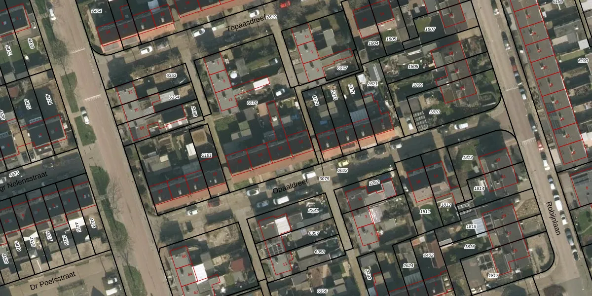Het perceel waarop Opaaldreef 10 staat heeft een oppervlakte van 1909 m². Dit is een zeer groot perceel. De perceeloppervlakte wordt geregistreerd door het Kadaster. Gedetailleerde informatie over de maten van dit perceel kunt u vinden in het rapport Kadastrale kaart met maatvoering van Opaaldreef 10.