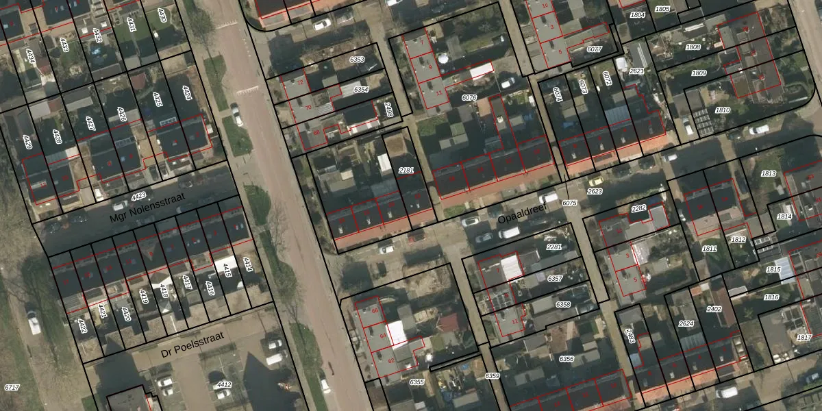 Opaaldreef 18 is gelegen op kadastraal perceel CUI00A2181. Deze kadastrale aanduiding is uniek en wordt gebruikt door het Kadaster om eigendomsrechten en andere zakelijke rechten vast te leggen. Het perceel maakt onderdeel uit van de kadastrale gemeente Cuijk.
