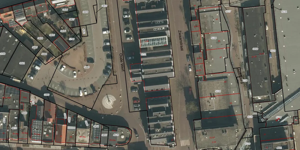 Het perceel waarop Oude Werf 34 staat heeft een oppervlakte van 3110 m². Dit is een zeer groot perceel. De perceeloppervlakte wordt geregistreerd door het Kadaster. Gedetailleerde informatie over de maten van dit perceel kunt u vinden in het rapport Kadastrale kaart met maatvoering van Oude Werf 34.