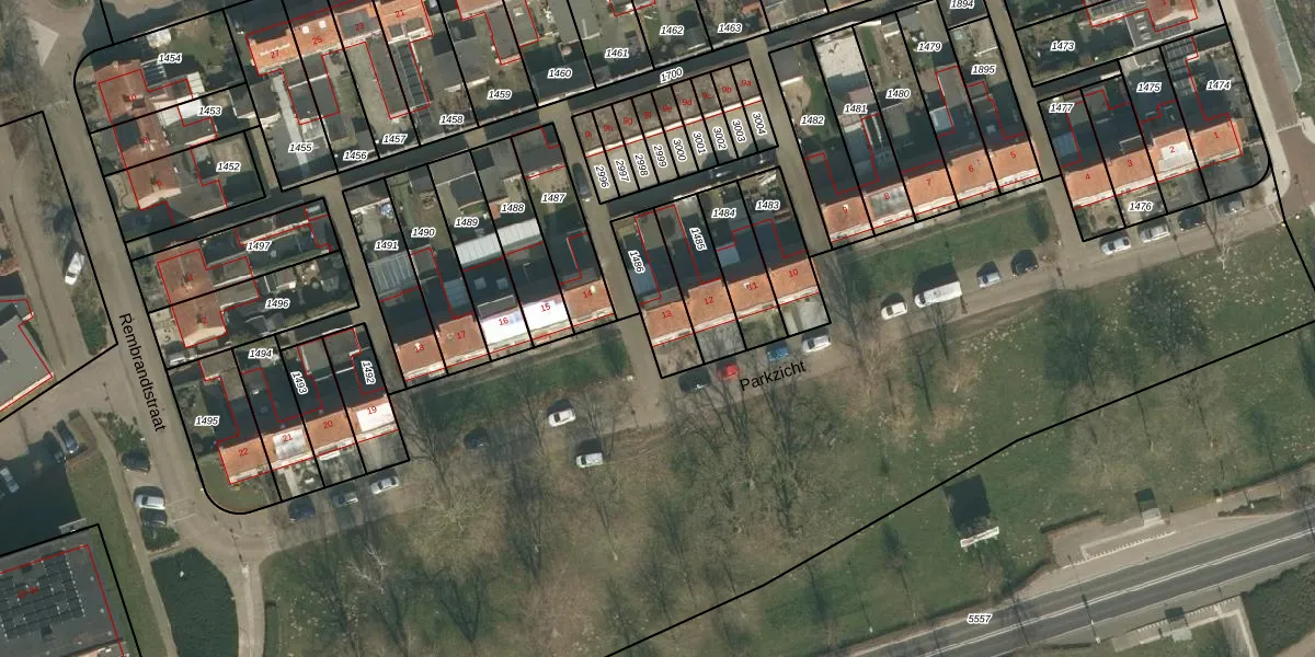Het perceel waarop Parkzicht 13 staat heeft een oppervlakte van 172 m². Dit is een middelgroot perceel. De perceeloppervlakte wordt geregistreerd door het Kadaster. Gedetailleerde informatie over de maten van dit perceel kunt u vinden in het rapport Kadastrale kaart met maatvoering van Parkzicht 13.