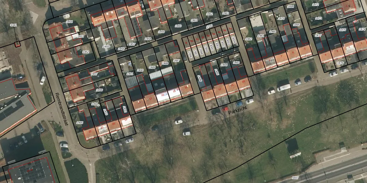 Het perceel waarop Parkzicht 14 staat heeft een oppervlakte van 214 m². Dit is een middelgroot perceel. De perceeloppervlakte wordt geregistreerd door het Kadaster. Gedetailleerde informatie over de maten van dit perceel kunt u vinden in het rapport Kadastrale kaart met maatvoering van Parkzicht 14.