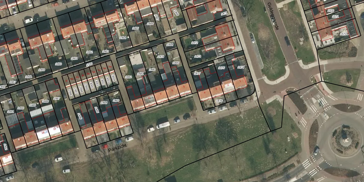 Het perceel waarop Parkzicht 5 staat heeft een oppervlakte van 180 m². Dit is een middelgroot perceel. De perceeloppervlakte wordt geregistreerd door het Kadaster. Gedetailleerde informatie over de maten van dit perceel kunt u vinden in het rapport Kadastrale kaart met maatvoering van Parkzicht 5.