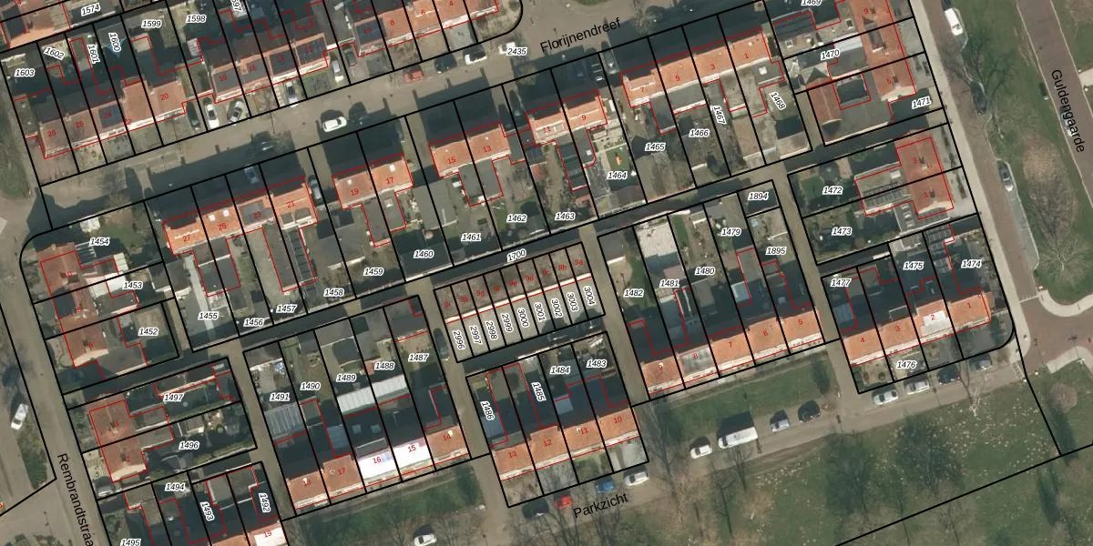 Het perceel waarop Parkzicht 9-c staat heeft een oppervlakte van 43 m². Dit is een klein perceel. De perceeloppervlakte wordt geregistreerd door het Kadaster. Gedetailleerde informatie over de maten van dit perceel kunt u vinden in het rapport Kadastrale kaart met maatvoering van Parkzicht 9-c.