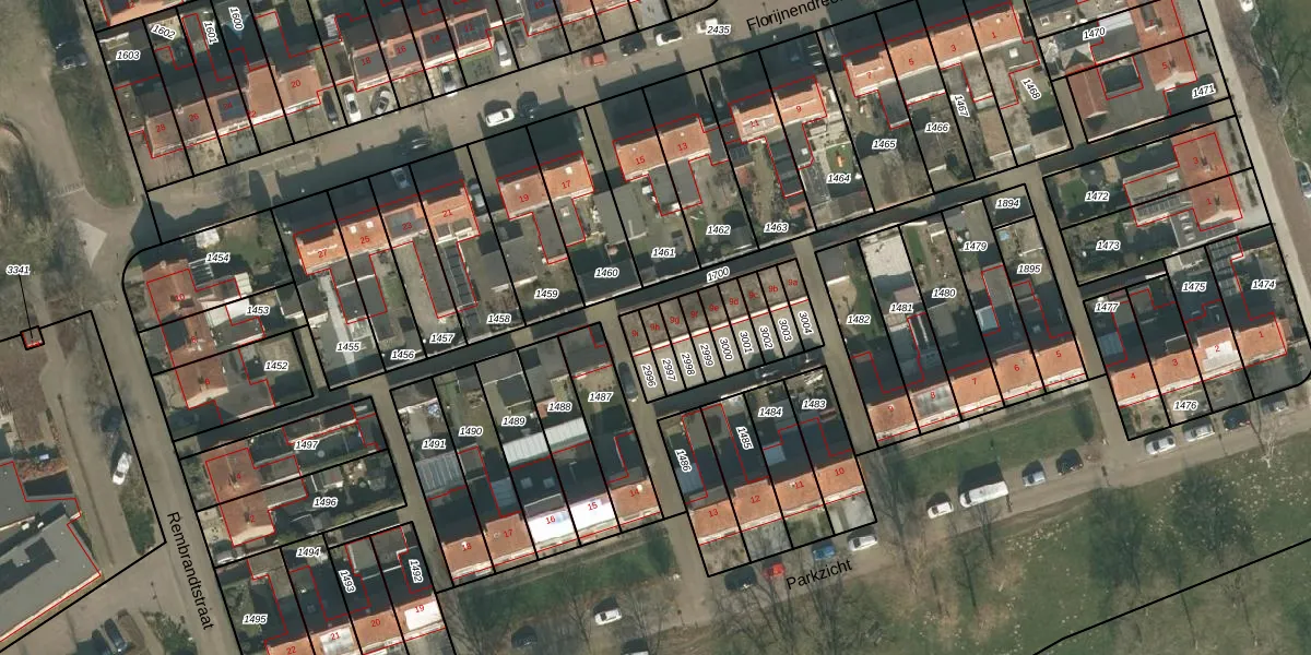 Het perceel waarop Parkzicht 9-h staat heeft een oppervlakte van 43 m². Dit is een klein perceel. De perceeloppervlakte wordt geregistreerd door het Kadaster. Gedetailleerde informatie over de maten van dit perceel kunt u vinden in het rapport Kadastrale kaart met maatvoering van Parkzicht 9-h.