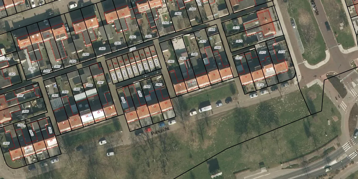 Het perceel waarop Parkzicht 9 staat heeft een oppervlakte van 214 m². Dit is een middelgroot perceel. De perceeloppervlakte wordt geregistreerd door het Kadaster. Gedetailleerde informatie over de maten van dit perceel kunt u vinden in het rapport Kadastrale kaart met maatvoering van Parkzicht 9.