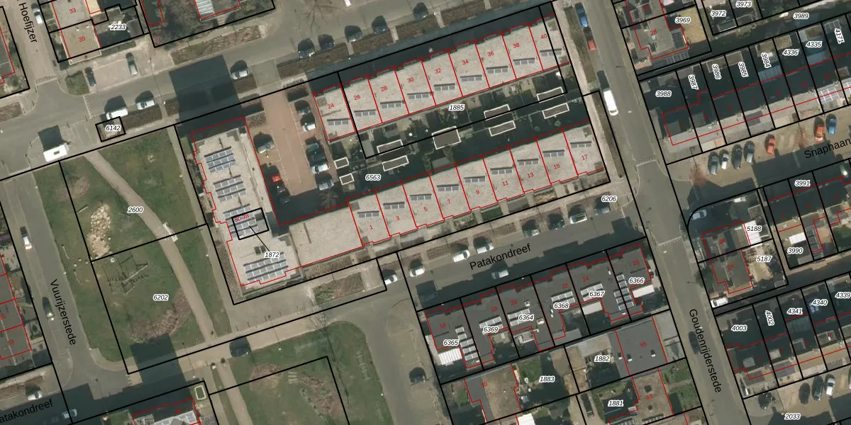 Patakondreef 5 is gelegen op kadastraal perceel CUI00A6563. Deze kadastrale aanduiding is uniek en wordt gebruikt door het Kadaster om eigendomsrechten en andere zakelijke rechten vast te leggen. Het perceel maakt onderdeel uit van de kadastrale gemeente Cuijk.