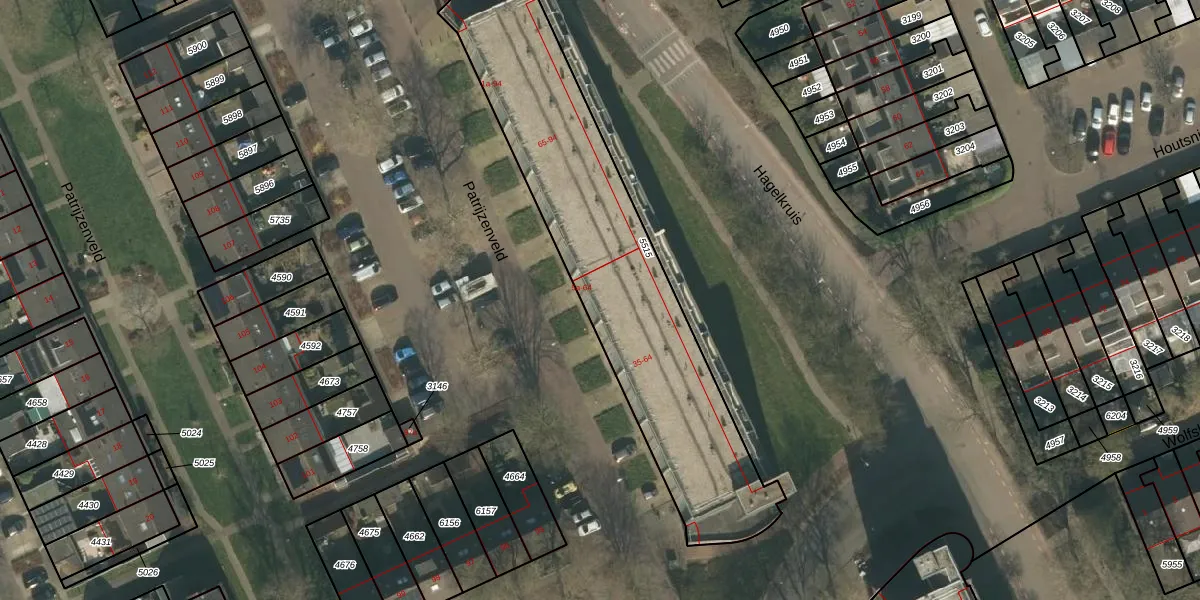 Het perceel waarop Patrijzenveld 44 staat heeft een oppervlakte van 1545 m². Dit is een zeer groot perceel. De perceeloppervlakte wordt geregistreerd door het Kadaster. Gedetailleerde informatie over de maten van dit perceel kunt u vinden in het rapport Kadastrale kaart met maatvoering van Patrijzenveld 44.