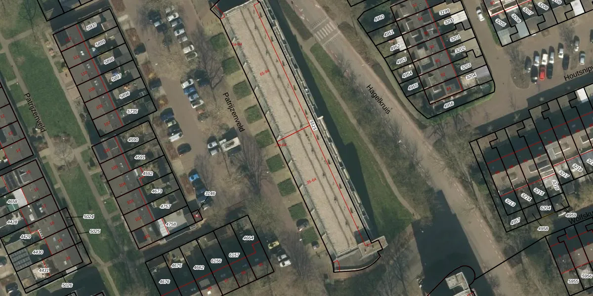 Het perceel waarop Patrijzenveld 49 staat heeft een oppervlakte van 1545 m². Dit is een zeer groot perceel. De perceeloppervlakte wordt geregistreerd door het Kadaster. Gedetailleerde informatie over de maten van dit perceel kunt u vinden in het rapport Kadastrale kaart met maatvoering van Patrijzenveld 49.