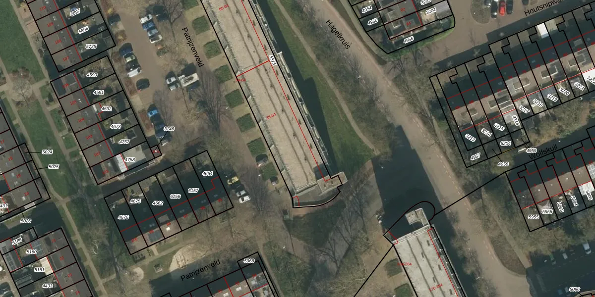 Het perceel waarop Patrijzenveld 56 staat heeft een oppervlakte van 1545 m². Dit is een zeer groot perceel. De perceeloppervlakte wordt geregistreerd door het Kadaster. Gedetailleerde informatie over de maten van dit perceel kunt u vinden in het rapport Kadastrale kaart met maatvoering van Patrijzenveld 56.